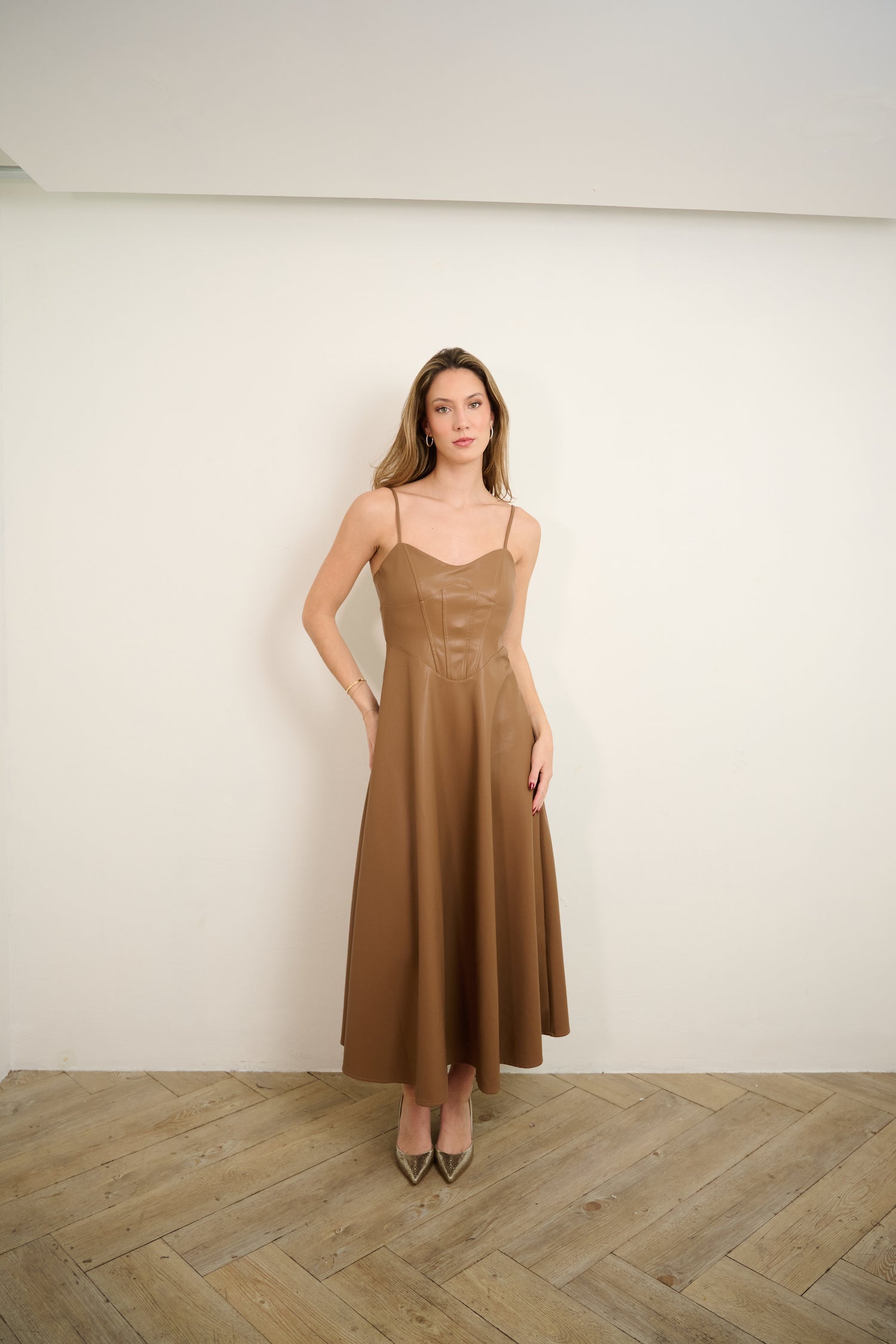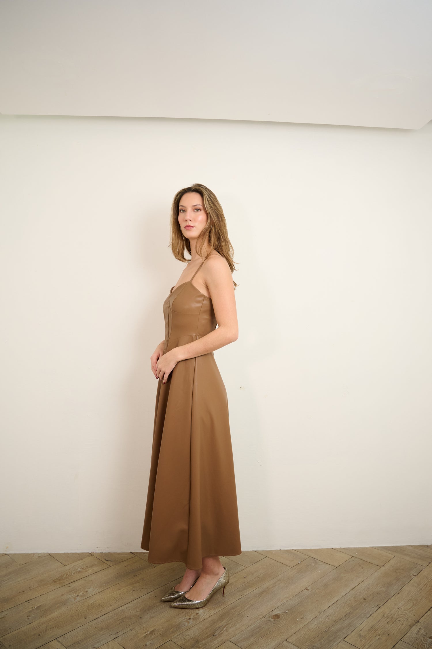 Brown Leather A Line Dress